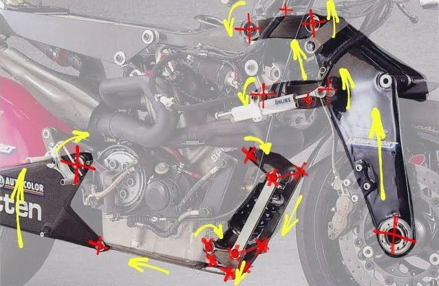 בדצמבר האחרון, כשהכנתי את הכתבה על נורמן הוסאק, שקעתי ראשי ורובי בסוגית המיתלים. רבים ומגוונים הם הפתרונות שהגו טובי המוחות הטכניים וגאוני הדור על מנת לשפר את יציבות הגלגול של כלי התחבורה המיוחד הזה שנקרא אופנוע, תחת נדנודי המיתלים במהמורות הדרך, וגם להעניק לו היגוי יציב תחת בלימה. הוסאק היה רק אחד מהממציאים שמצאו פתרון לבעיה והוא בנה מתלה קדמי מאד מיוחד שכלל לא עושה שימוש בטלסקופים הסטנדרטיים והמוכרים לנו היטב, אלא מורכב ממקבילית זרועות שאוחזת את הגלגל הקדמי יציב מצד אחד ומעניקה לשלדה תנועת שקיעה מצד שני, תוך שהיא יוצרת הפרדה בין שיכוך מהמורות ובין עומסי שקיעה של השלדה על ובכיוון הגלגל הקדמי.