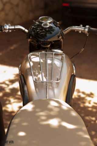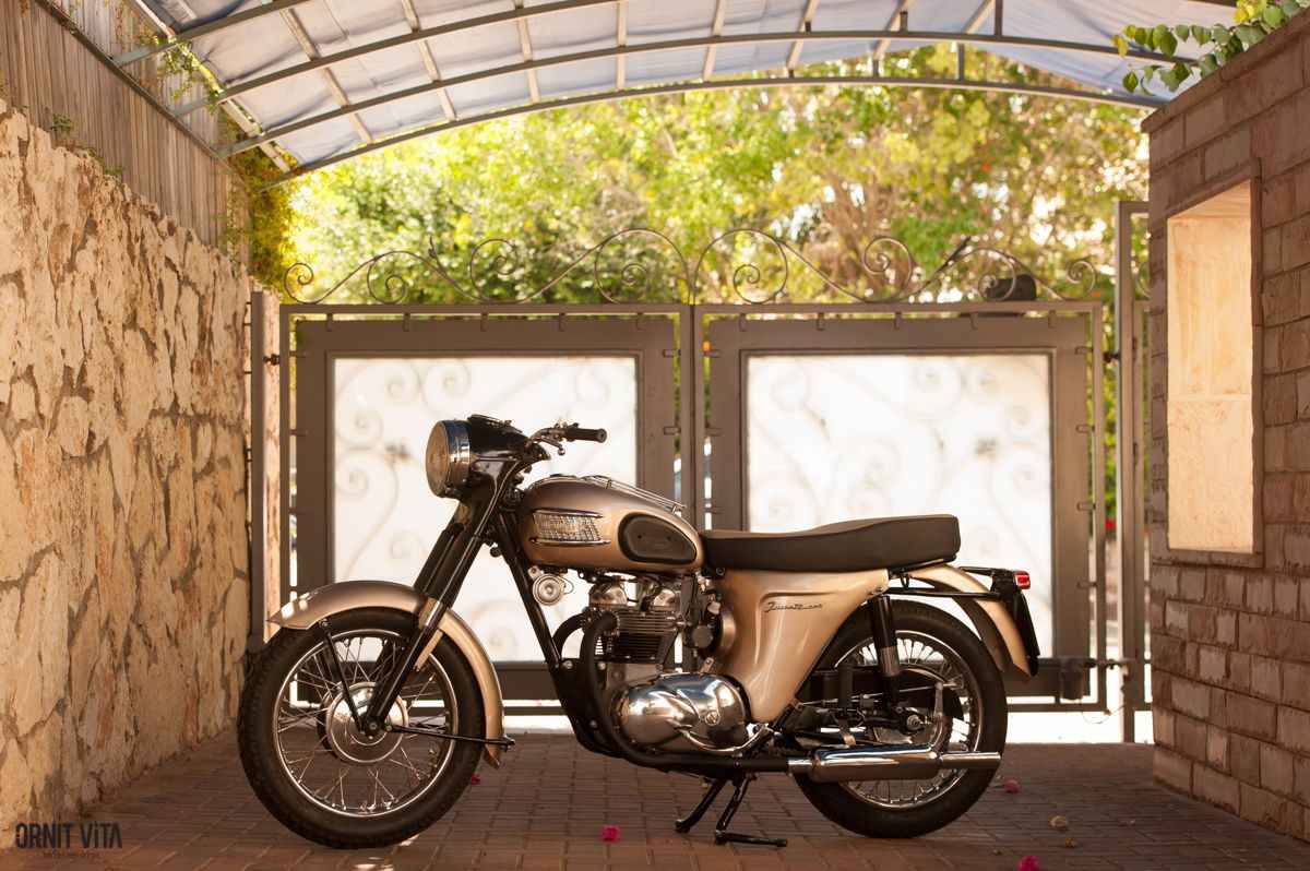 במקור יצא הדגם בשתי סכמות צביעה: שמפניה וכחול-ביקיני. בחר בשמפניה ומסר את העבודה לצבעי מטירה. המושב עבר לרפד בפתח תקווה אבל את כל עבודות הפחחות החליט שיעשה לבד וגהר ימים ארוכים על הברזל החלוד מטליא חור לחור. עד כאן ידע מה לפניו ומה צריך לעשות וזה היה החלק הפשוט כי כשניגש למלאכת ההרכבה התבררה לו עובדה מדהימה שהבריטים באותם ימים שייצרו את האופנוע הזה השתמשו בשלושה סוגי תבריגים שונים אלוהים יודע למה, והוא נאלץ לכתת אצבעות על המקלדת וללמוד את תורת התבריג על בוריה. מי שעזר לו בכך וגם השלים לו חוסרים היה בית עסק סקוטי לברגים בשם GRIN.