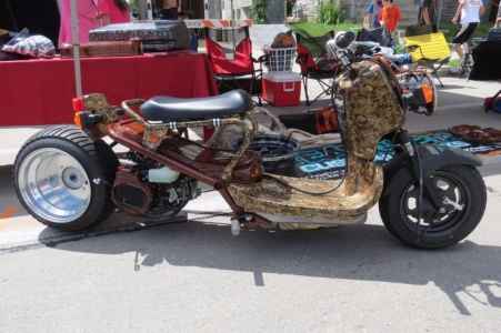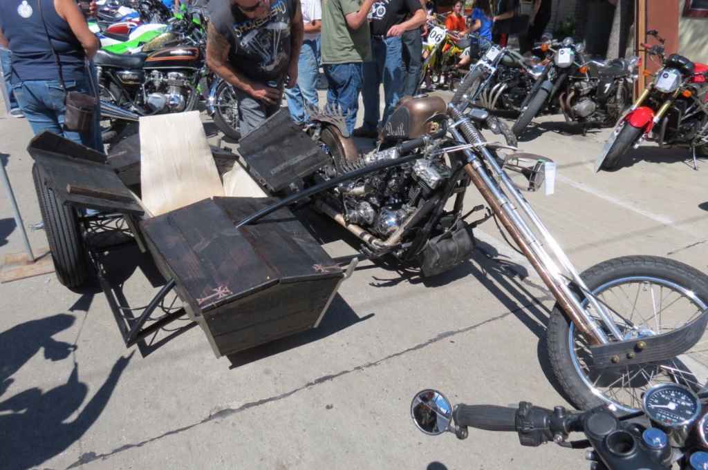 אחד הדברים המיוחדים שתפסו אותי היה מעין אופניים מונעות על ידי ארבעה מנועי מכסחת דשא חדשים המחוברים בטור כאשר משיכה בפולי מניעה את המנוע הראשון והוא כבר מניע את כל השאר (בדיוק כשהגעתי הבעלים הדגים כיצד הוא מניע את הנ"ל). היה שם גם משהו שנראה כמו טוסטוס שהמעטפת שלו כוסתה בחתיכות פח מאיזה טרקטור ישן, החזית נראית כמו של פרגוסון וכך גם מושב המתכת. היו שם גם שני קאסטומים עם סירות צד מיוחדות, האחד עם סירת צד מפחית בירה והשני עוצב בסגנון אנדרטייקר עם סירת צד בסגנון ארון מתים. הפרטים ועבודת המתכת על האופנוע הזה היו מושקעים בצורה חולנית ממש. או מה שהחל את חייו כטוסטוס פוך ישן וקיבל מנוע שתי פעימות עם קירור מים, כידון קפה רייסר ודיסק היקפי על הגלגל וכל הדבר הזה יושב כל כך נמוך שלא ברור כיצד ניתן לרכב עליו, אבל כן, בעליו הגיע איתו ברכיבה. היו עוד כל כך הרבה וכמו שאמרתי אני עדיין מעכל את מה שחוויתי שם.