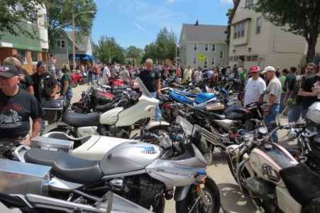 וכך מצאתי את עצמי בשבת בבוקר השלישי לאוגוסט רוכב לכיוון מילווקי. הגעתי בערך בשעה עשר וחצי ולמרות שהאירוע רשמית מתחיל ב-11 בבוקר (ונמשך עד שש בערב) הרחוב כבר היה מלא באופנועים כאשר אל המקום זורמים עוד ועוד ללא הפסק. לטובת האירוע נסגר הרחוב על מנת לאפשר למציגים לפרוס דוכניהם ולהציג את אופנועיהם במרכז. מה אומר לכם, מעולם לא ראיתי כזו כמות של יצירתיות ומוטציות דו-גלגליות, ואינני זוכר את מספר הפעמים/סבבים של הלוך חזור לאורך הרחוב שעשיתי על מנת לא לפספס שום דבר. המצלמה לא הפסיקה לרגע לתקתק ולתעד כדי שניתן יהיה להעביר את המראות והתחושות לכם הקוראים.