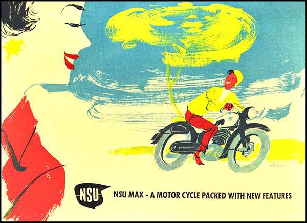 שינוי כיוון: הטקסטורות החדות והמאיימות משהו מתפוגגות ובמקומן מקבלות הפרסומות המצויירות קוים רכים ורגועים יותר. הטקסט הנלווה מדגיש את יעילותו של המוצר, וההדגשה היא על כדאיות הרכישה של האופנוע. צרכנות נבונה.